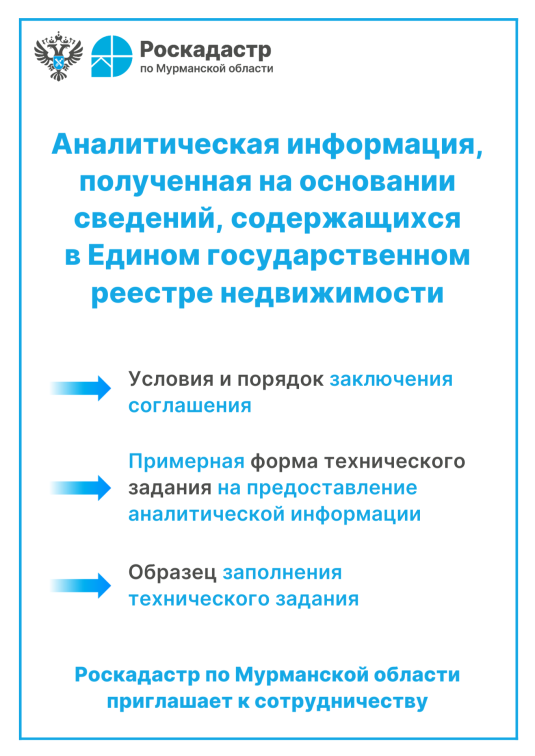 Для того, чтобы заказать аналитическую информацию, которая будет подготовлена под конкретный запрос, заинтересованному лицу необходимо подать обращение и предоставить проект технического задания. Предоставление аналитической информации на основе сведений, содержащихся в ЕГРН, на безвозмездной основе действующим законодательством Российской Федерации не предусмотрено.